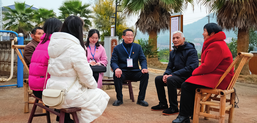 湖南省娄底市委第十三巡察组对娄星区石井镇朝 阳村开展提级巡察,这是巡察干部以屋场会的形式了 解群众操心事、烦心事、揪心事。(王智雄摄)